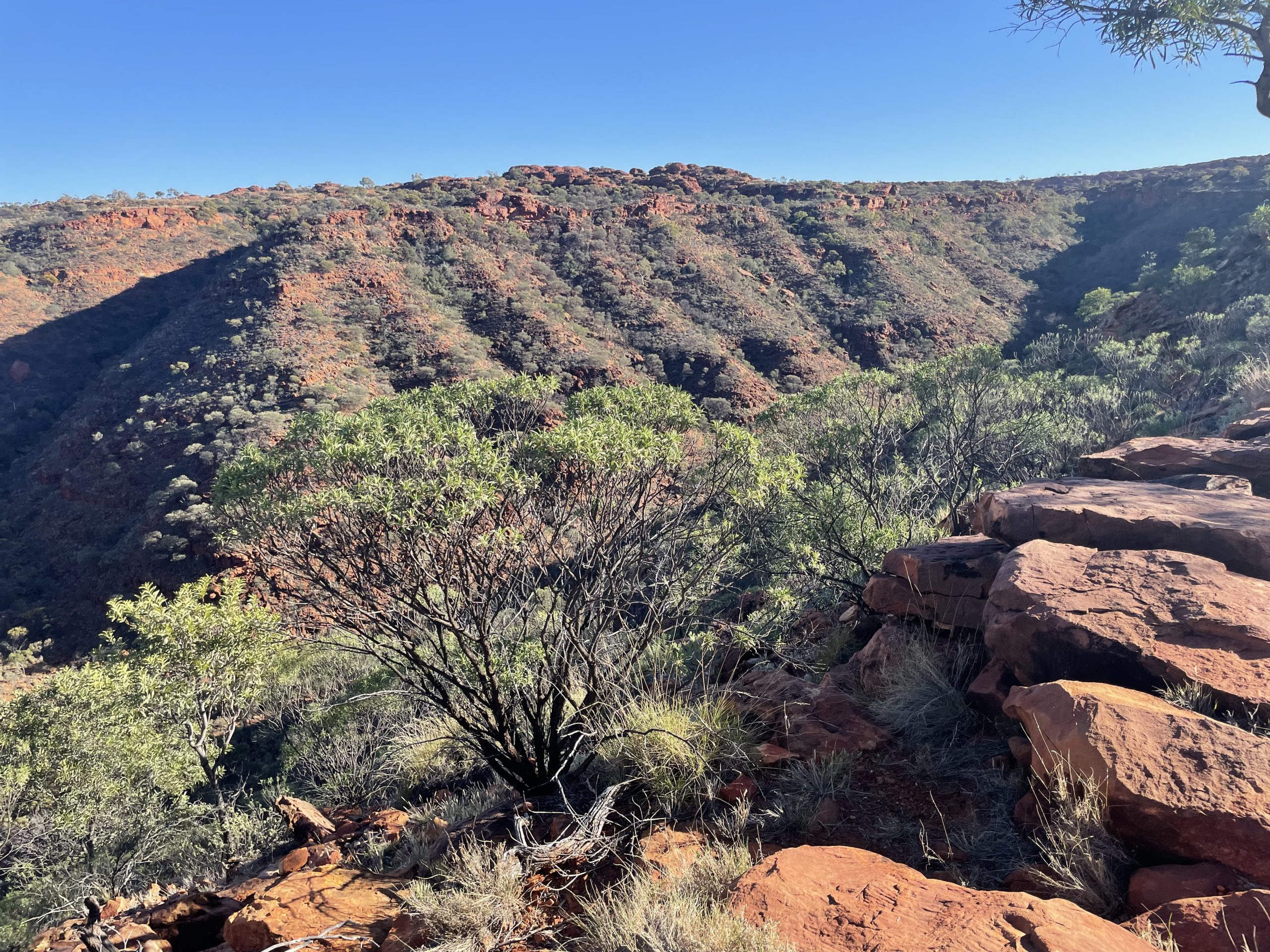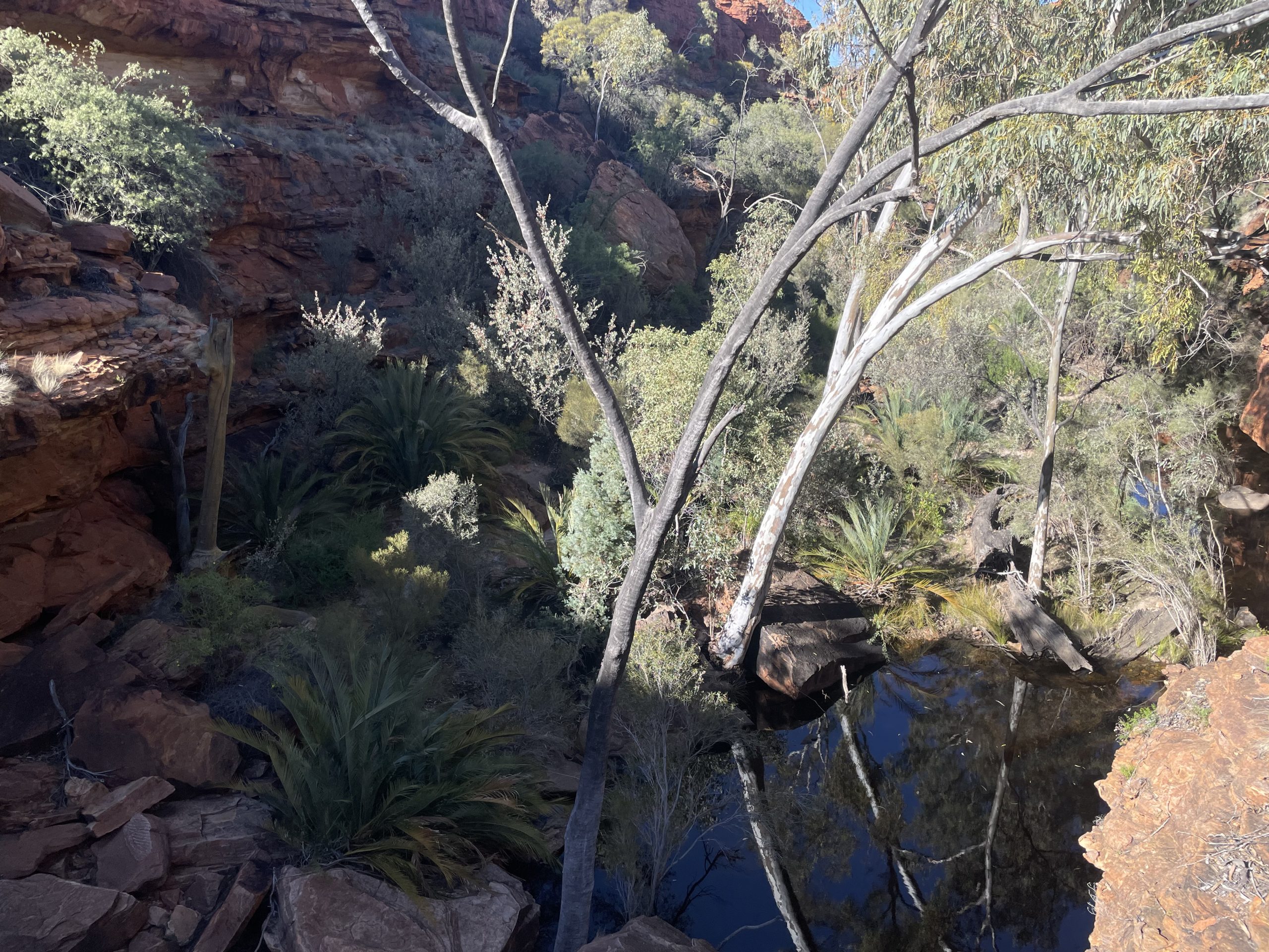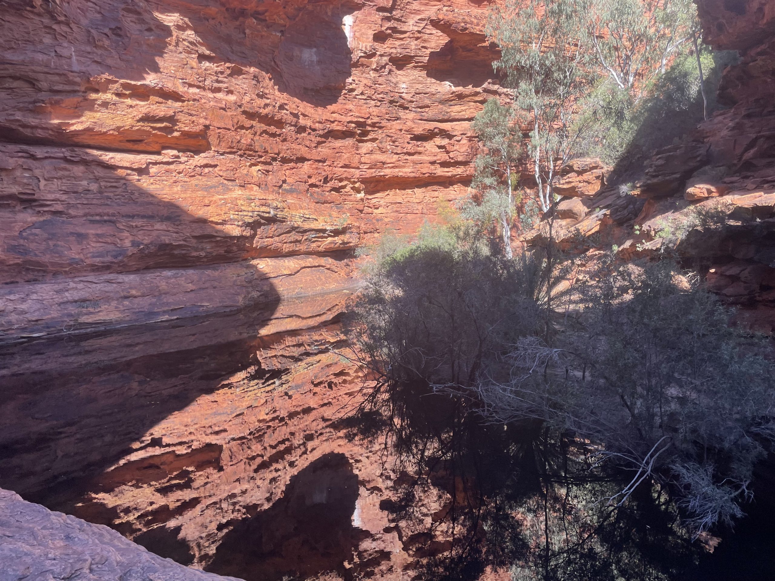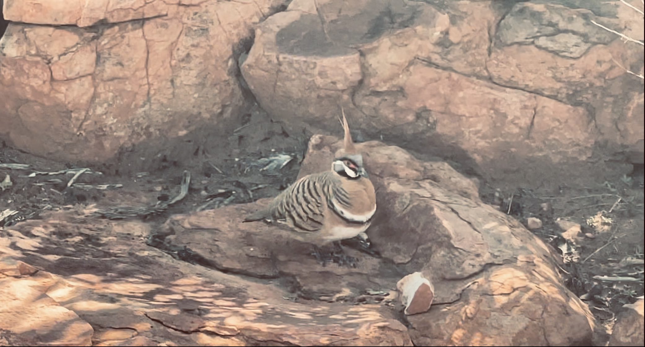 We started off early to get to the Kings Canyon Rim Walk. The rim walk is a grade 4/difficult walk which takes about 4 hours to complete. It starts off by going up a really tall flight of stairs on a mountain that takes around 20-40 minutes to climb up. Then you get to the top of the mountain, and you can look out all the way across the canyon! Once you keep walking, you can see some Cycads which are quite a rare plant that looks like the top of a palm tree on the ground. After you go past there, you get to these wooden bridges and stairs that take you down into the centre of the canyon which is quite a lush place with heaps of trees and water hole in it. The garden in the centre is called the Garden of Eden. When we got down there, we sat at a water hole for a while and then climbed up the other mountain and kept going. The other mountain was very similar to the first mountain, except we saw a Ring-Tailed Dragon lizard, but unfortunately it ran away before I could take a photo of it. While we were walking, a Spinifex Pigeon came really close to me and I was able to get a really good photo of it! The rest of the walk was pretty much the same until it started sloping down into the carpark. When we got back, we went to a cafe for lunch, and I had a camel burger. The camel was alright, but it was quite tough, and I only rated it a 5/10. The kangaroo I had a few days ago tasted much better and I rated that an 8/10. After that, we had dinner, and I went to bed. Tomorrow, we will be going to Alice Springs for 4 days which will be pretty exciting!