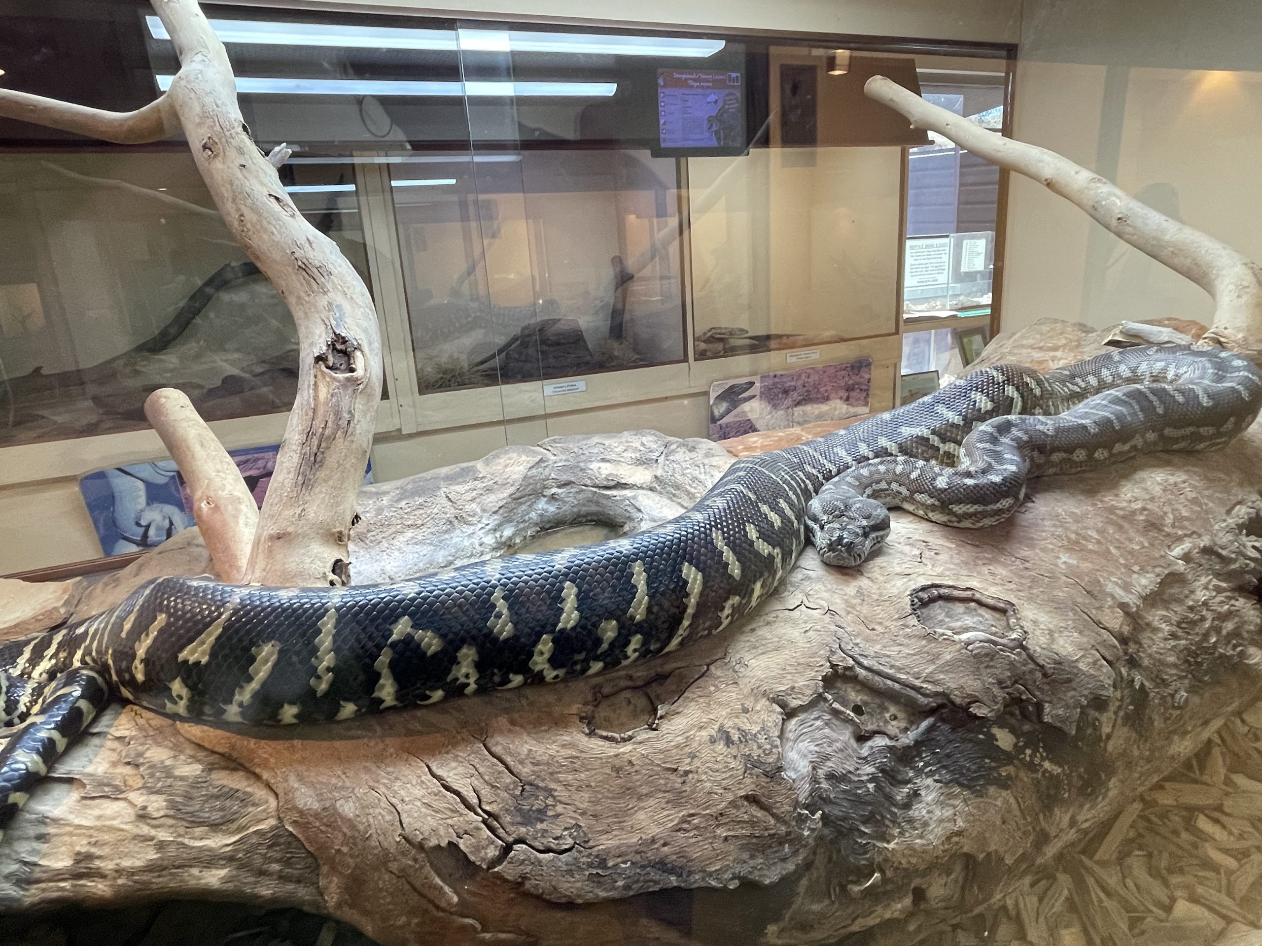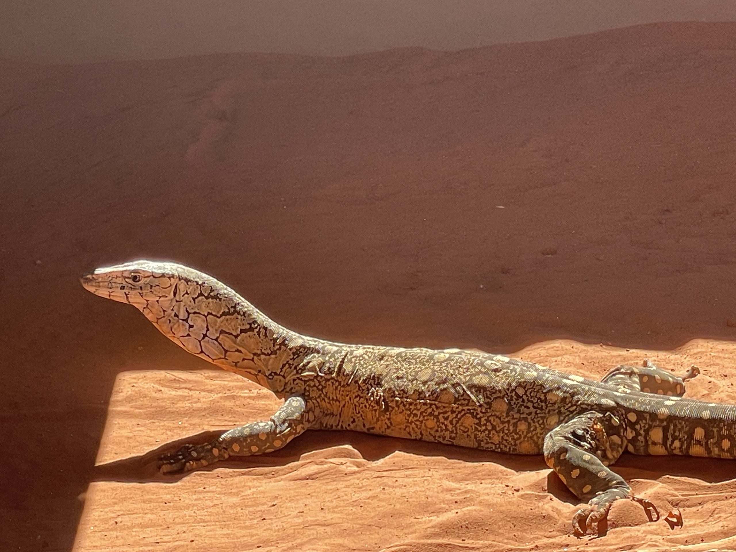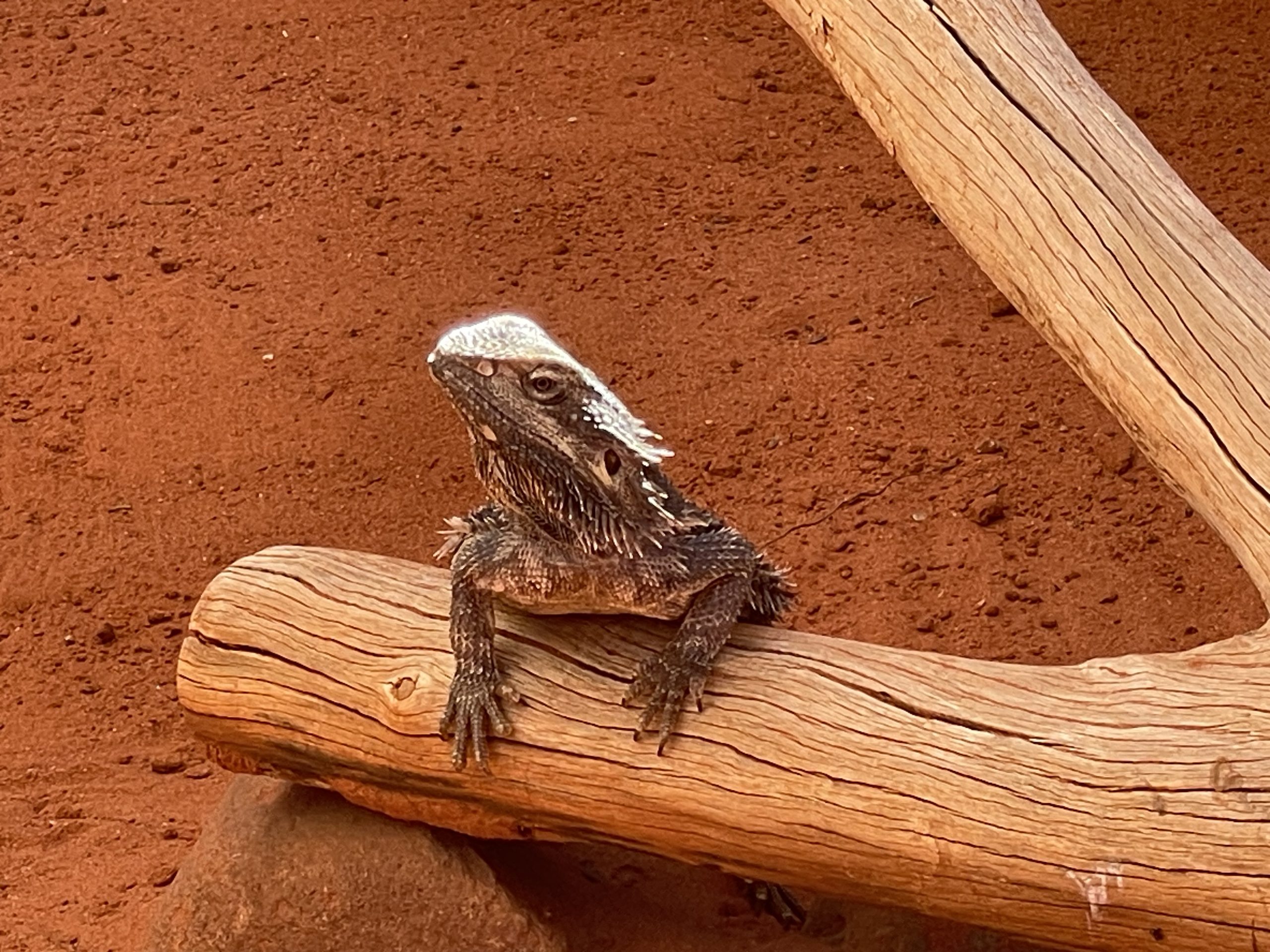 We started today by driving into Alice Springs. After we looked around a bit and looked through some shops, we drove to Anzac Hill which is an Australian war memorial. It was pretty cool, and it had a really good view of Alice Springs. After that, we went to buy pool noodles for the hot springs that we are going to soon. After that, we ate lunch and then went to the reptile museum. The reptile museum opened with a bunch of snakes and goannas which was really cool. The next room had some massive pythons in it that looked like they could easily strangle something, as well as some frilled-neck lizards. Then we went into the outside bit, we saw some lizards and some really big goannas. After that, there was the crocodile exhibit. It was a 30-year-old saltwater crocodile which 3.3 meters long. It was sitting under the water when we first came but we saw it go up to the surface for air. After it went to the surface, it saw us and stayed up there to keep an eye on us. In the next enclosure, there was some water goannas which were swimming around which looked c00l. Another enclosure had some thorny devils which were really spiky, and they were also really tiny! After that, we bought some things from Coles and went back to the van to have dinner. Then we played a game of Rummikub and went to bed.