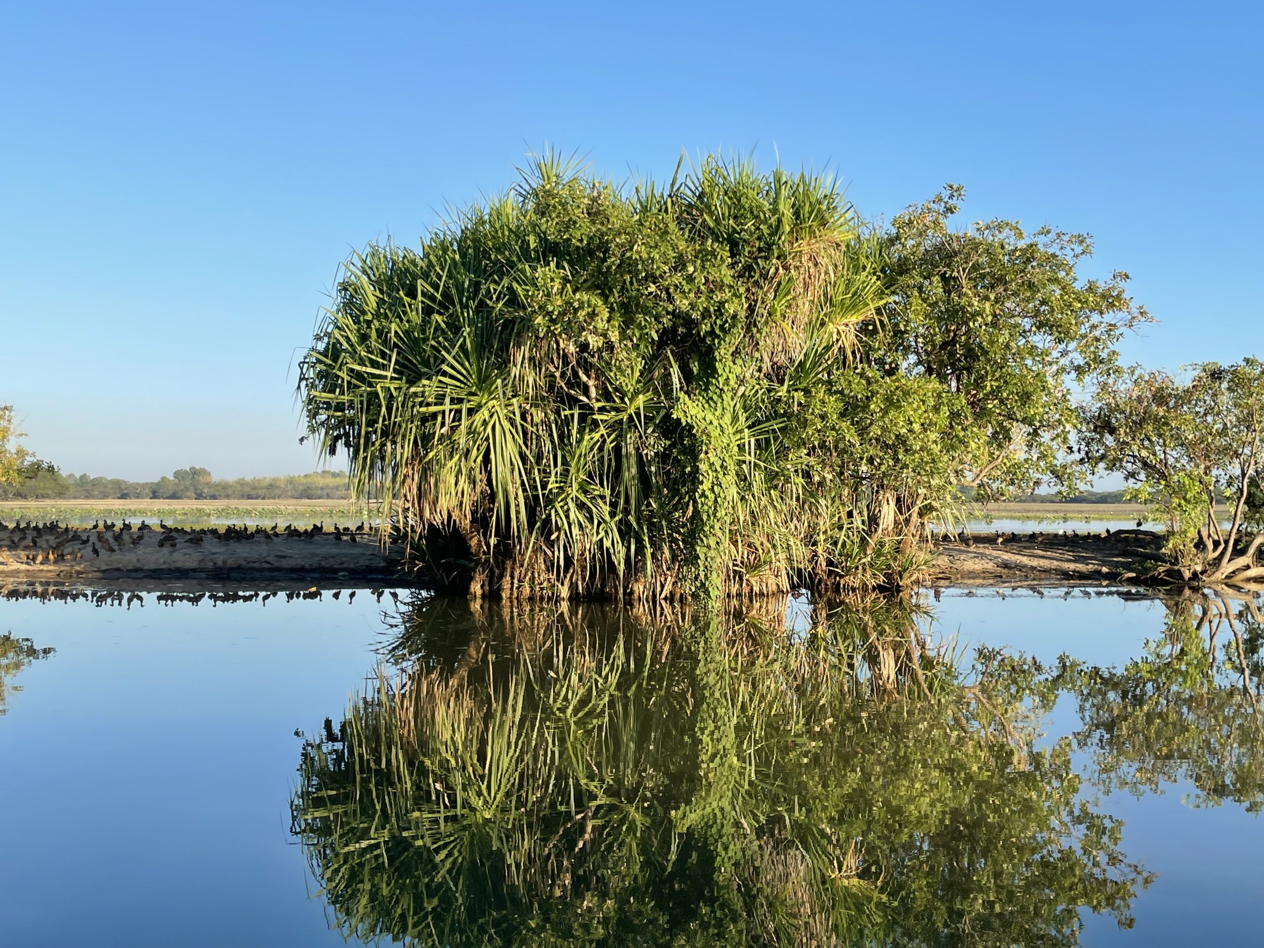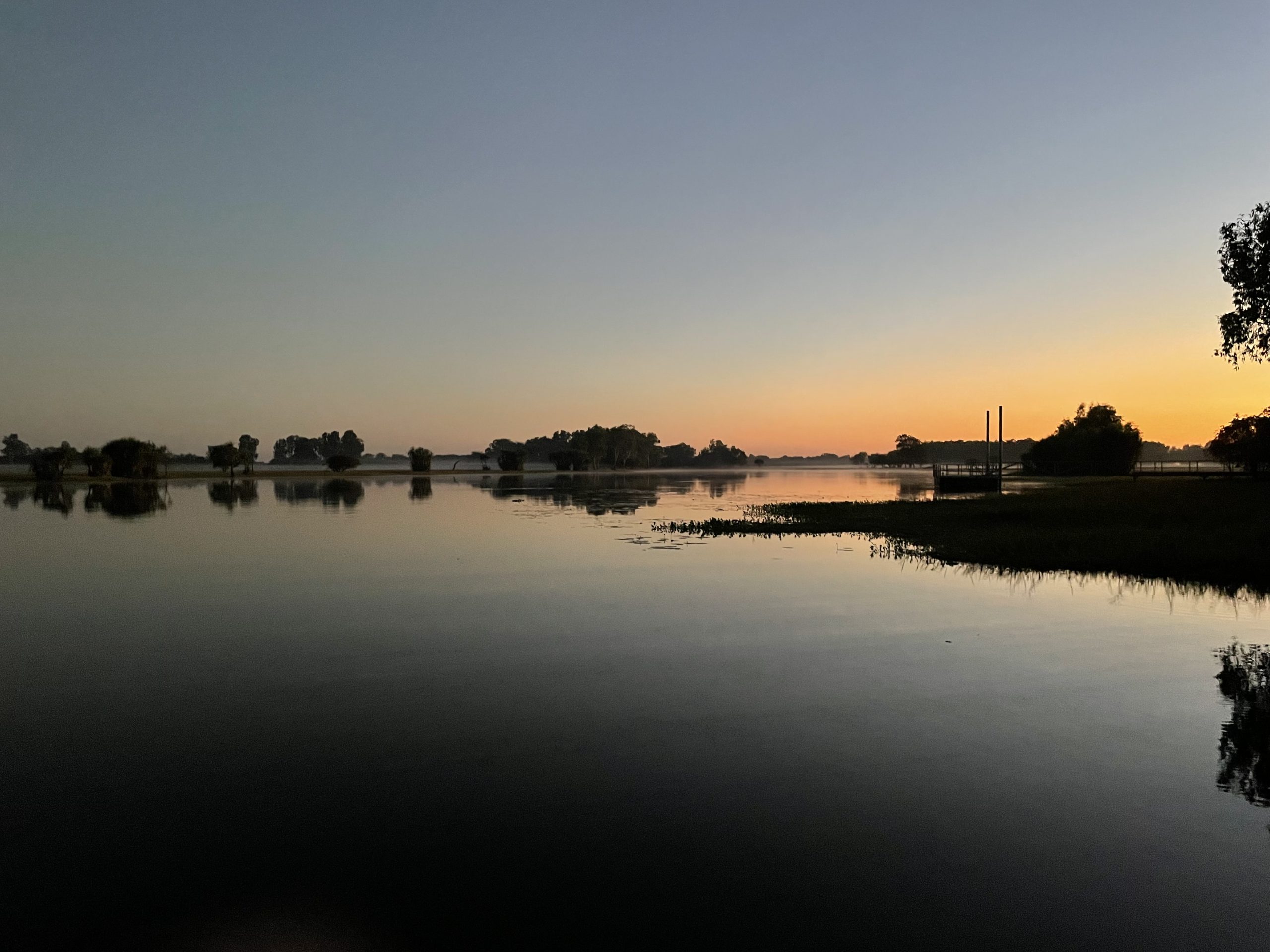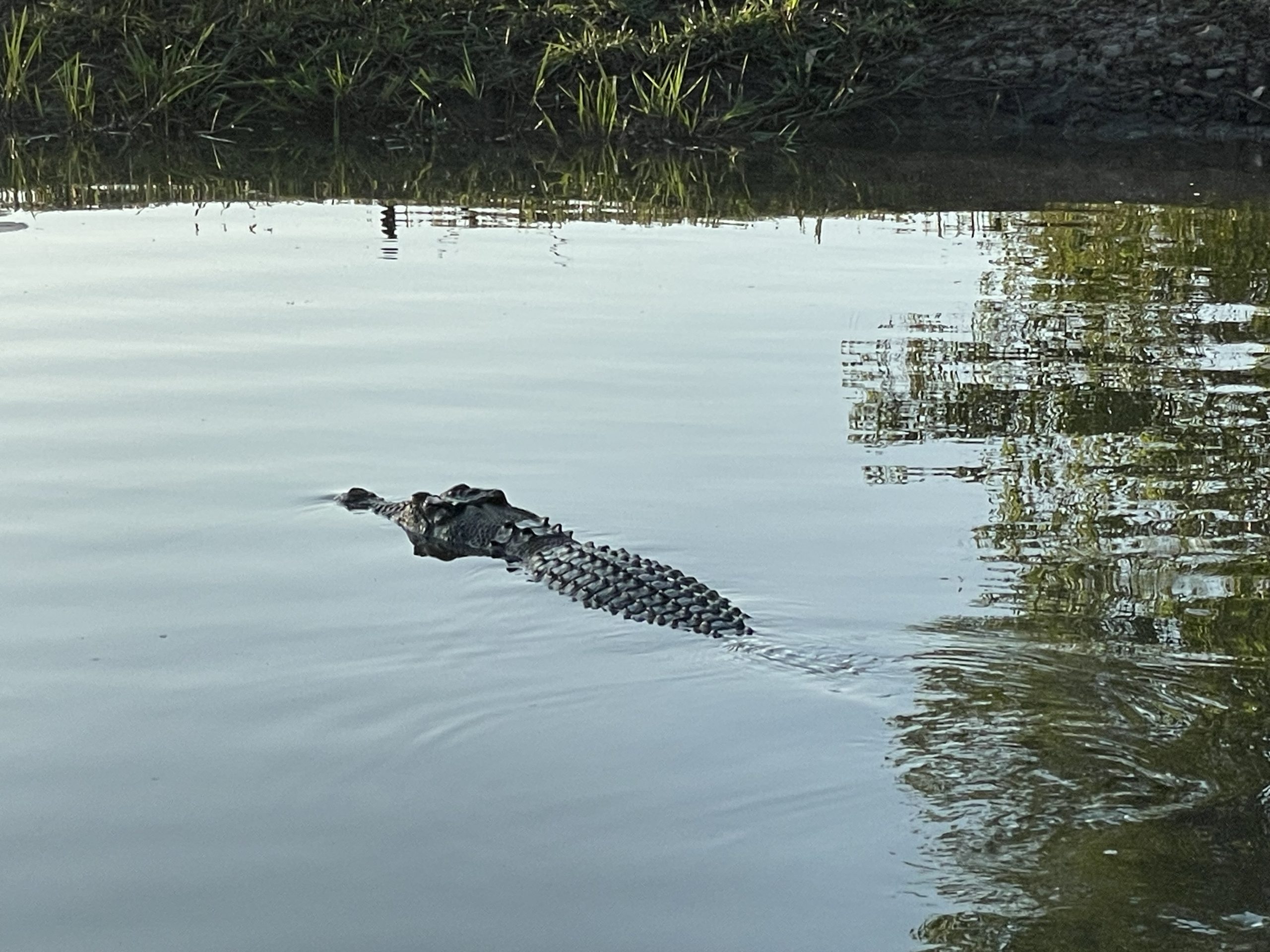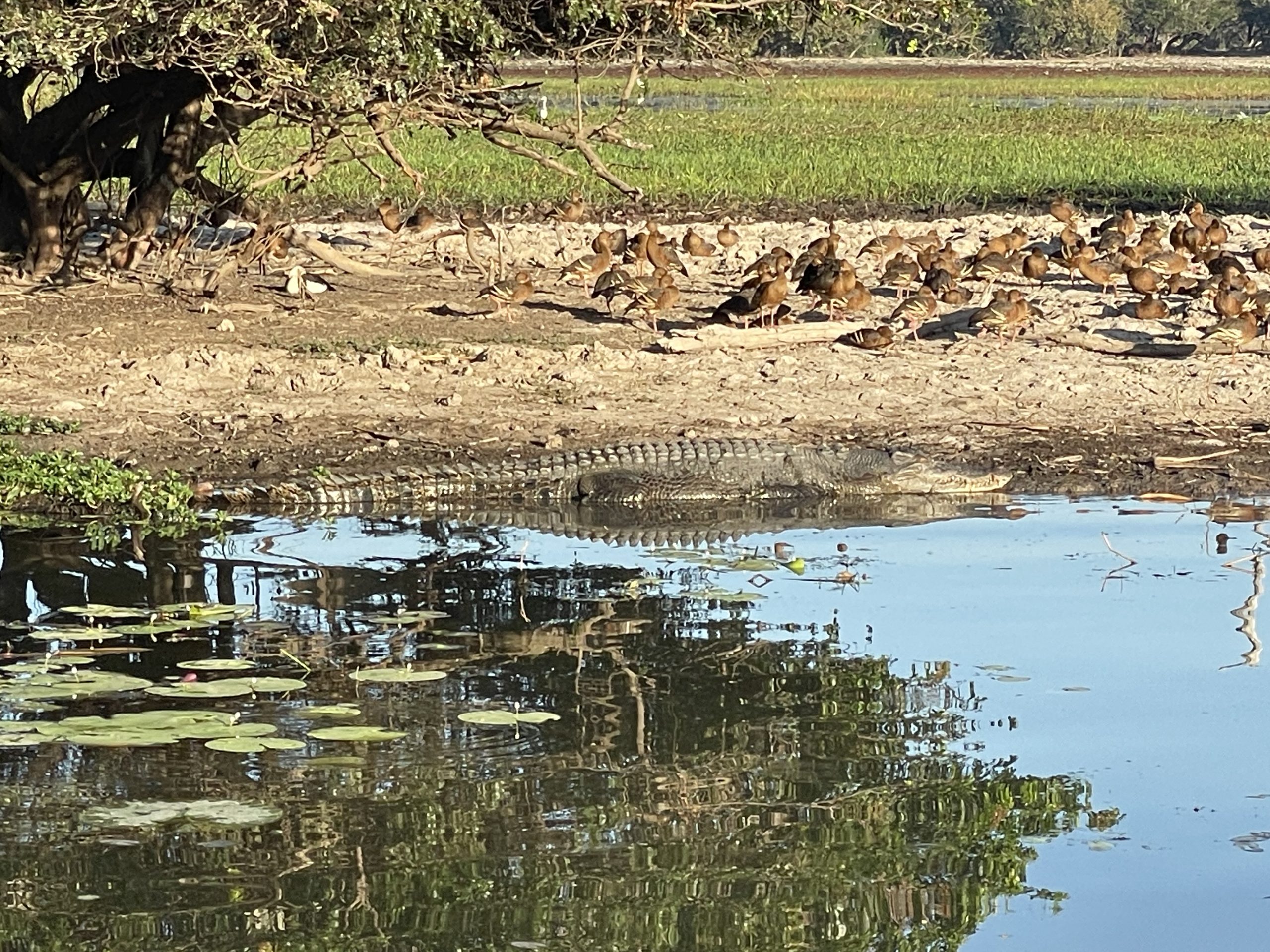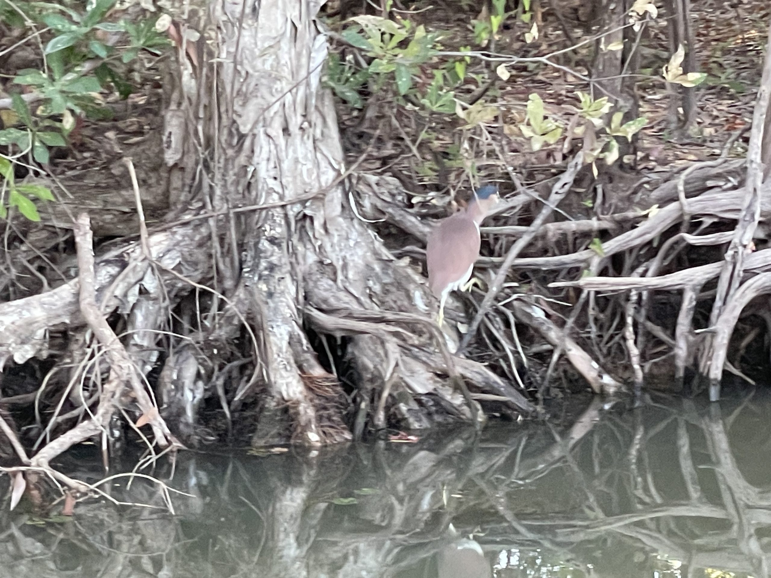 Today began by getting up at 5:40 am to go on the Yellow Waters River Cruise. When we got there, we went to the dock and got in the boat at about 6:40. When we sailed out of the dock, the sky was a light orange colour even though the sun hadn’t got up yet. We went out of the small channel where the dock was and sailed into the main river system, where we saw a saltwater crocodile floating in the water to the right of the boat. This was the first wild saltwater crocodile I had seen because the other ones I had seen on the trip were contained. Near the beginning of the river, there was a few dead catfish floating at the top of the water that the crocodiles had bitten and used as bait for a bigger animal to come. On the sides, there was tens of thousands of ducks all lining the riverbank and there were heaps of birds that all looked different flying around. There was even a sea eagle that was on top of a dead tree and then flew down to hunt in the river! We saw another crocodile that was on the side of the bank just sitting out of the water as the sun had risen a little bit and it was sunning itself. When we kept going, we came to a lot of mangrove trees that had a lot of vibrant birds in them. There was a Nankeen Night-Heron sitting on one of the roots that I got a photo of but it jumped as soon as I took the photo so it is blurry, and the boat went too far away before I could take a better one. Near the end of the river, there was a dead buffalo that had heaps of crocodiles doing deathrolls on it a few days before. Unfortunately, though, it was just an empty carcass when we came to it and no crocodiles were there. Near the end of the cruise, we went down a different branch of the system and found a saltwater crocodile sitting on the bank with a baby crocodile next to it. The baby crocodile was tiny compared to the adult one! After we got back from the cruise, we went to a small walk in some wetlands with heaps of tropical trees. While we were in the beginning of the walk, a kangaroo jumped past us which was the first one we had seen this trip, because they are allowed to be hunted in the Northern Territory. When we got back, we swam in the pool which was really nice because it was 36 degrees and we had dinner at a fish and chips shop that had crocodile tacos and barramundi. The crocodile had a really weak taste and all you could taste was the barramundi which was nice. After that, we came back to the van and went to sleep. (This was a very long post)