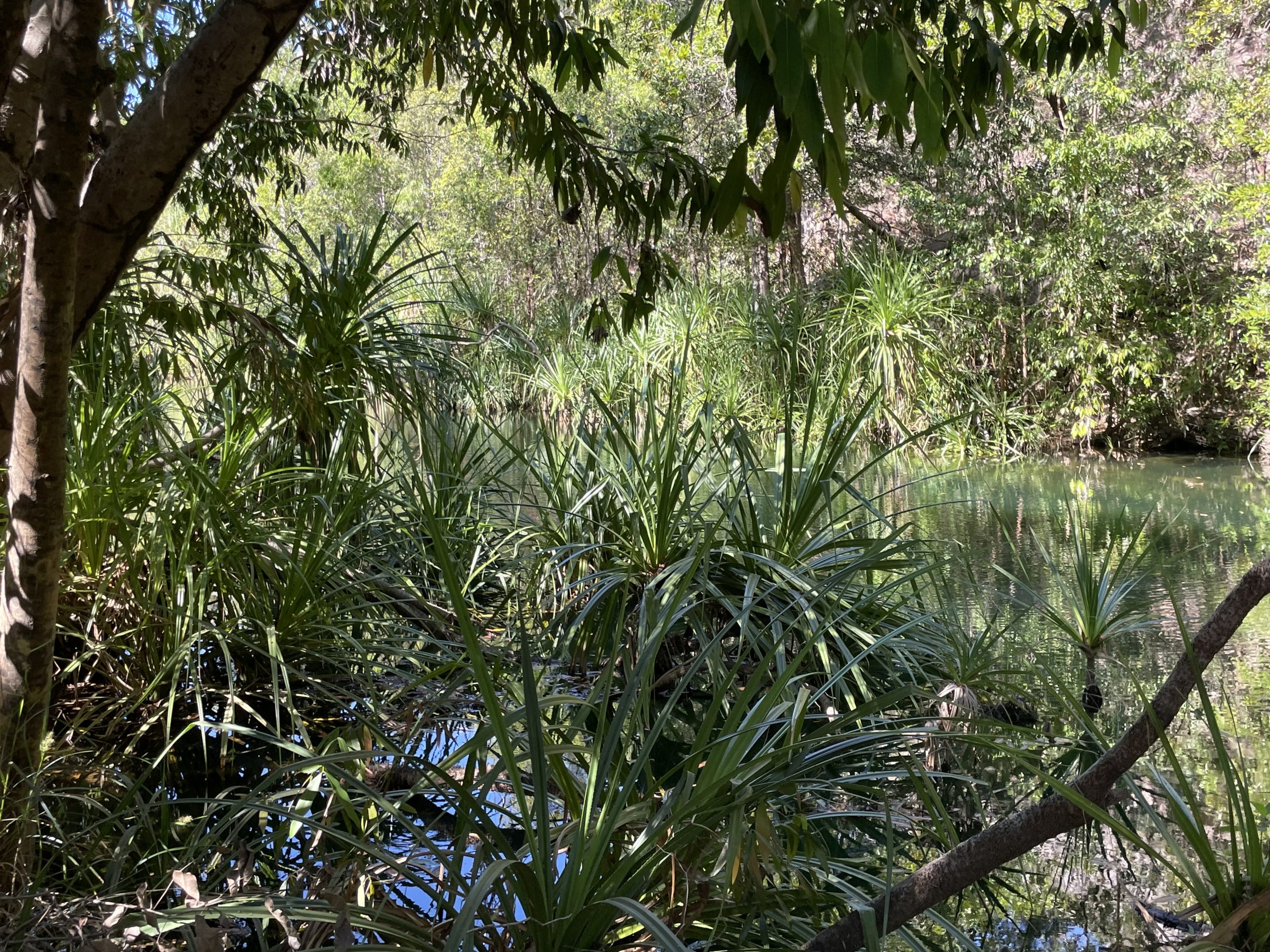 We started with a small walk to Maguk Falls. At the start, some parts of the path were flooded so we had to walk along a log in the middle of it and then take a detour around in a makeshift path built in the grass. After we got out of there, we had to walk on a very rocky riverbank and then cross the creek using steppingstones in the middle. The other side of the creek was pretty similar, and we just had to step on some precipices coming out of the wall to step over a small water hole. When we got there, we saw lots of people swimming in the pool below the waterfall and we didn’t realise we could swim because of all the crocodile signs up so we didn’t bring our bathers. While going back, we took a wrong turn, but that worked out as we found a medium sized goanna walking through the underbrush. We got some pretty good photos and videos of it! Near the end of the walk, we saw some cockatoos with really large crests. After we got back, we swam in the pool for about an hour. When we were having dinner, I needed a drink, so I went into our van to get my drink bottle and while I was walking around our van, a piece of glass went into my foot from a smashed glass about a week and a half earlier. It didn’t really bother me that much, so I came back and finished dinner and then we used a pair of tweezers to get it out. After that I just sat in bed until I went to sleep.