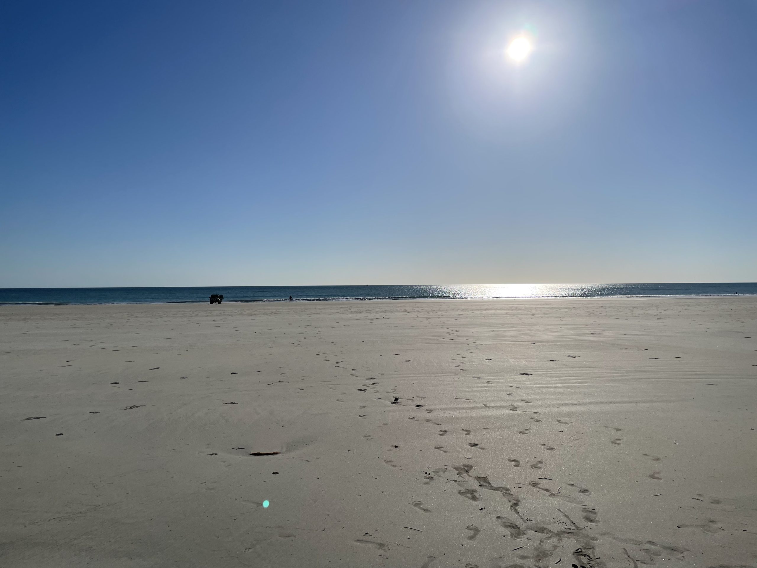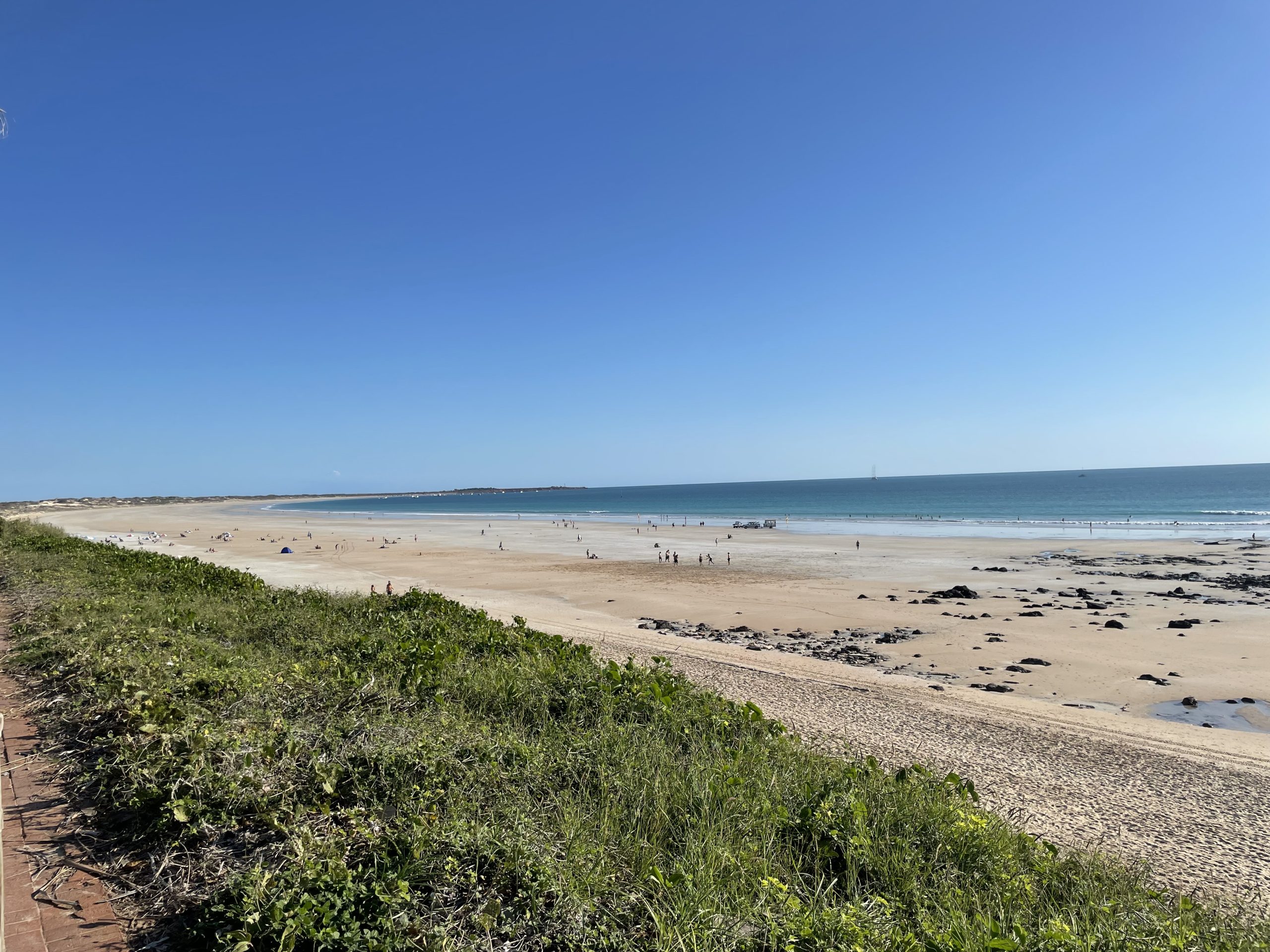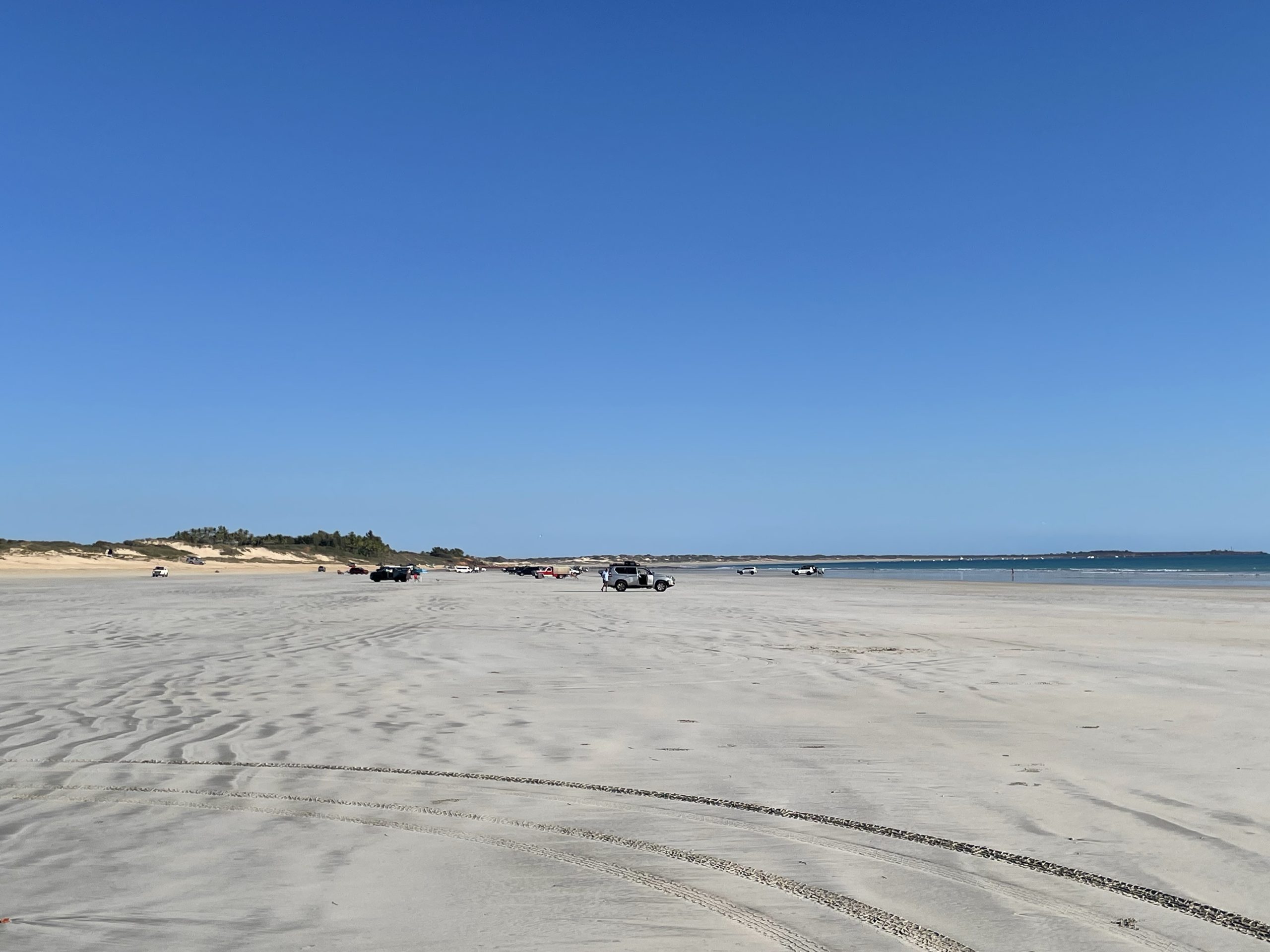 In the morning, we walked down to the river to see the flood damage. The river had gone up about 50 meters and completely destroyed the mountain next to it. All the safari tents overlooking the river were just wooden supports with the bathroom destroyed next to it. Some of the tents didn’t even have the wooden frame or the front decking and it was just a concrete pad in the ground. After we left Fitzroy Crossing, we drove through a small road created to cross the river since the bridge was washed away. Nothing really happened on the drive, and we arrived in Broome after 4 hours. Currently we are staying in an unpowered site about 20 minutes out from Broome but tomorrow we will go into a new site which is right next to Broome. The first thing we did was look around some of the stores in Broome. After that, we looked at the ocean from a lookout and it had a lot of pearling ships in the water around Broome. The next thing we did was we drove down to Cable Beach. We drove the car onto the sand and drove down the beach and it was really good! There were heaps of people sitting in their cars watching the sunset over the water. After we went to the beach, we drove to a market happening near the other ocean in Broome. There were lots of stalls and I even got this really big clam shell with pearl lining the bottom of it. Some of the pearl was super expensive in the market. I saw a necklace with a lot of big round pearls priced at $2200. After we went to the market, we went to a seafood restaurant for dinner. Dad had lobster, Mum had barramundi and I had calamari. After we had dinner, we drove back to the van and opened all the windows because it was super-hot, and we had no air conditioning because of the power. After that, we stayed there until we went to bed.