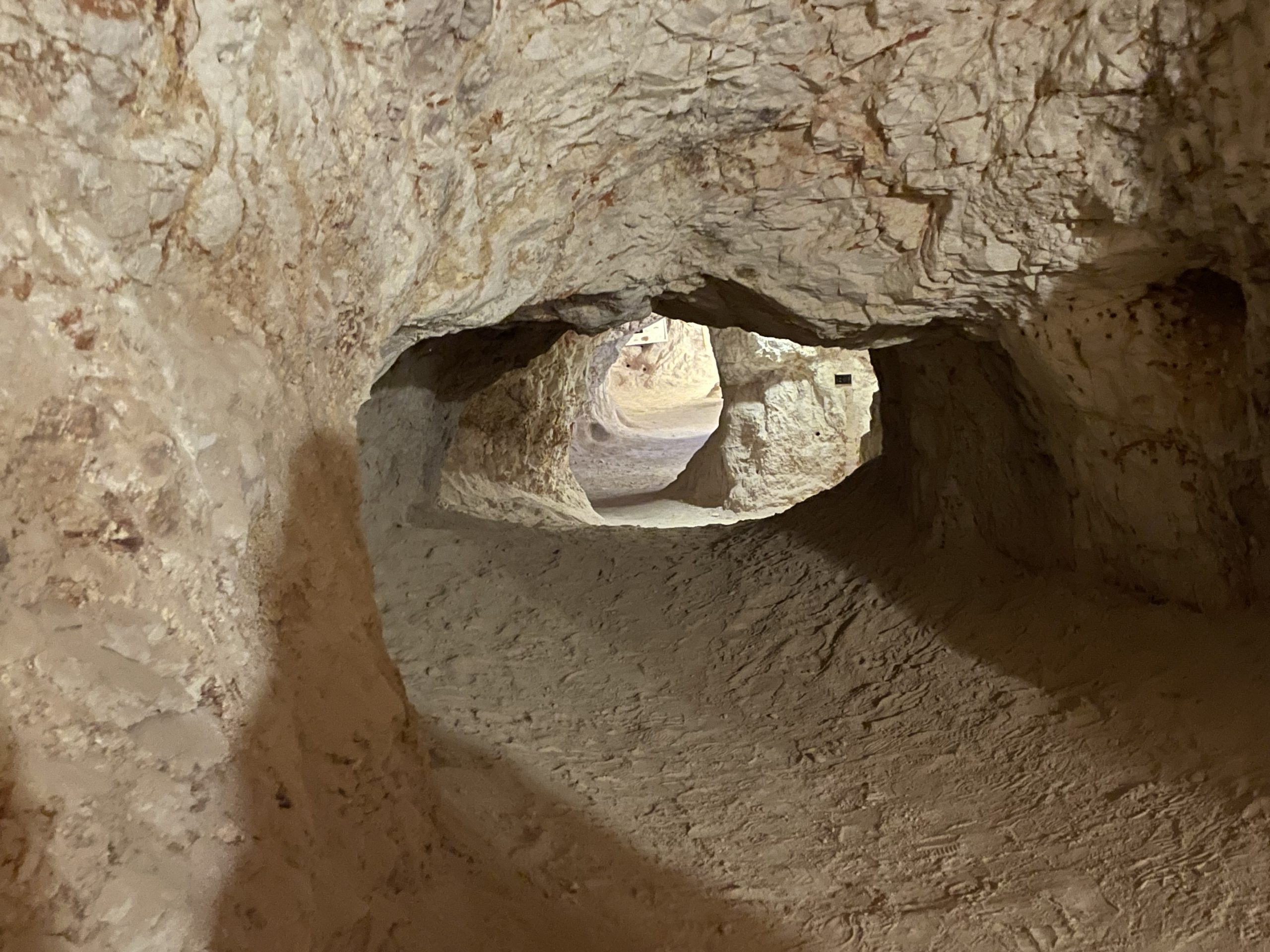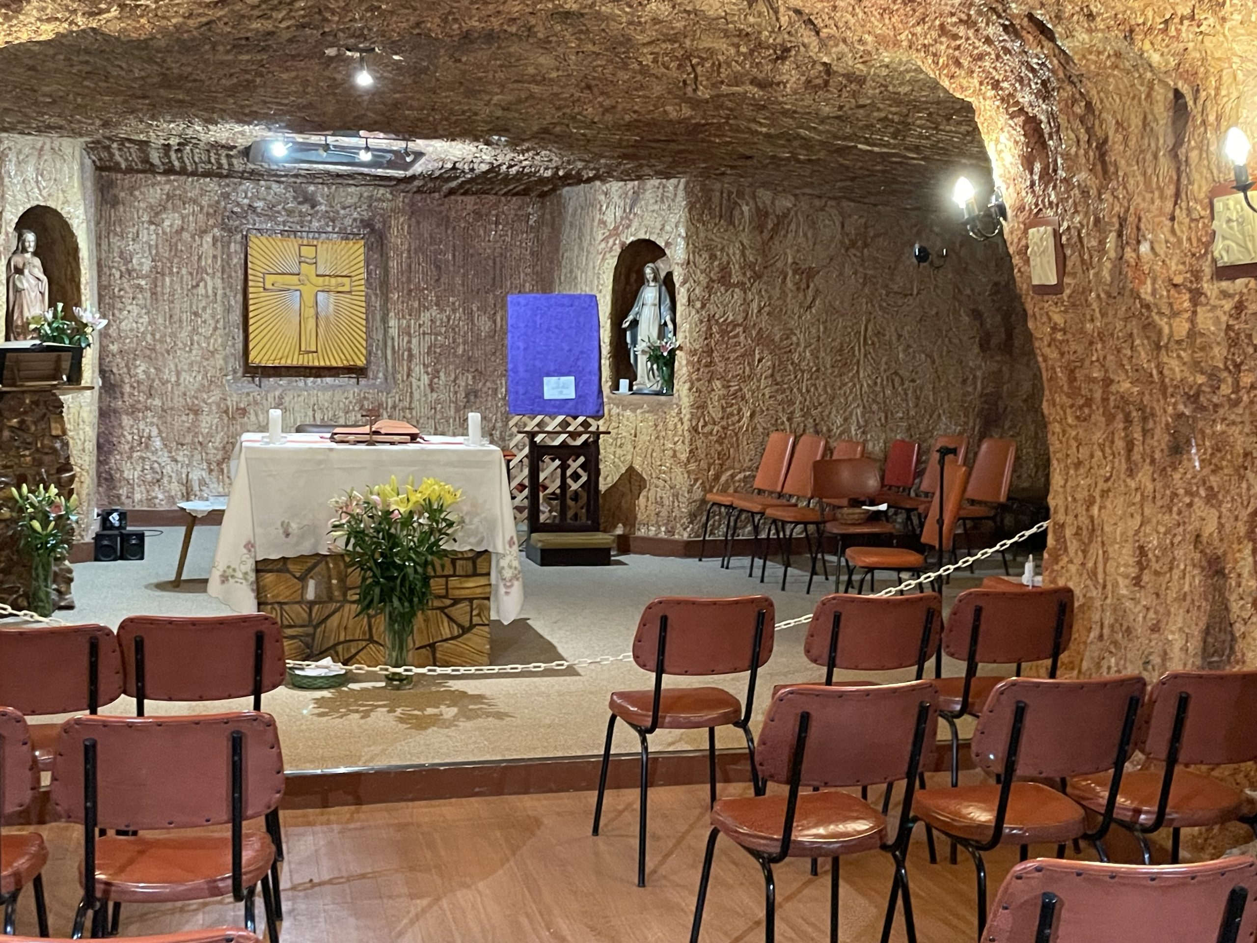 Today was the first day that we stayed multiple nights in one place. We started off by waking up early to go on the tour around Coober Pedy. It started around 8 am and we drove to the underground catholic church first. It was really cool to be under the mountain and it was so nice and warm under there with it rarely changing from 22 degrees. It looked like your regular small catholic church but with the add-on being that the walls and roof was rock. After we left the Catholic Church, we went to the Umoona Opal Museum. It started out by going into the underground cinema which was a projector screen with wooden seats underground. It played a video that explained how opal was made and discovered in Coober Pedy and how it became a town. After we watched that, we went through to a small room that was a small miners’ quarters in the mountain. We then went down into the opal mine where we saw all the different explosives the miners used to cut into the rock, and we saw how you can find opal using a blacklight and we saw the traces of it leading to a deposit of opal. After we got out of the mine, we were led into a dug-out home which is a home that is dug into the mountain. It was really spacious, and I could imagine myself living there. The only problem is that when the lights turn off, it is pitch black in there, even in the middle of the day. After we left the museum, we went to the underground Anglican Church, that looked a lot like the Catholic Church but without the stained glass and it had the fish symbol on the wall. Then we went to the Coober Pedy sign which is a black mining truck on top of a sign that says Coober Pedy. We also looked at the golf course that has blacks instead of greens on the course because they couldn’t get any green to use for it. When the tour ended, we walked around town and spent a few hours looking through all the opal stores to find one we liked. The problem was, was that it is very expensive. Any opal that is a pretty good size to get costs $1000. In the end, I had to buy an opal that was on a discount of $30 for each karat. I could only get a 2.4 karat opal that cost $70, and it was only 1 centimetre long! But it does have a lot of colours in it with it having all sorts of reds, greens and blues on a white background, so it looks really good! After we went around town, we drove to the breakaways to have dinner. The breakaways are a big drop-off in the terrain with it suddenly dropping 20-30 meters. It looks really nice as the land just keeps going when it drops off so you can see so far! In the photos I took though, it doesn’t look as big or grand as it did in real life, so I don’t really know why. Anway, after we ate dinner, we came back to the van because it was already getting dark. Tomorrow we will also be staying in Coober Pedy, and we are planning on doing some noodling in the slags to look for some opal.