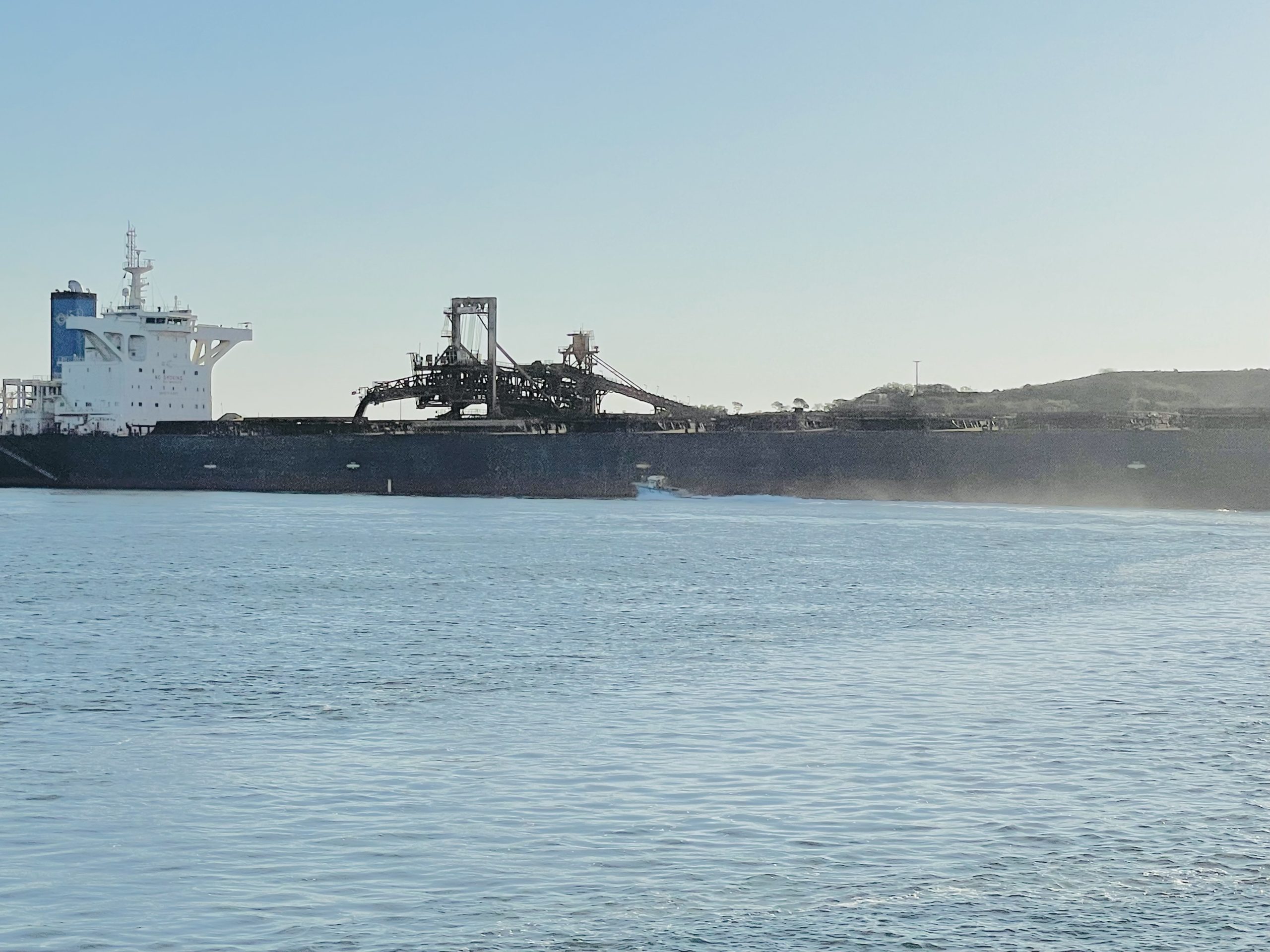 A really big cargo ship in the port (It was really dark so I did some brightening but it made look a bit weird)