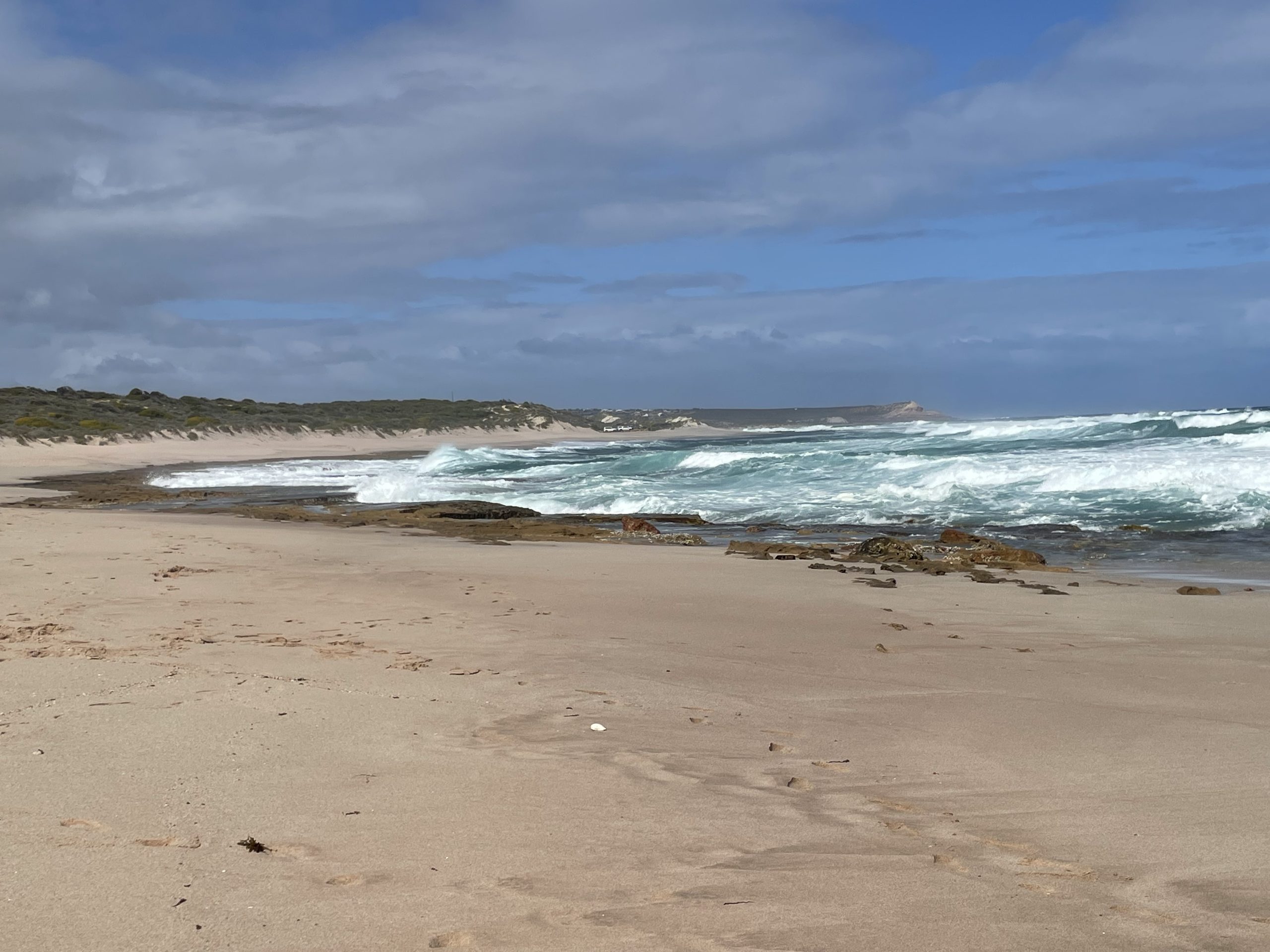 Today was Father’s Day so we went into town so we could have lunch at a cafe. While we waited, we explored Kalbarri. We went up to the beach and walked along it. The waves were massive, and some were 3 times my height. There were also lots of oyster shells washed up on the beach. The waves were so loud and there were also some blue bottle jellyfish on the beach. After we went to the beach, we looked at the inlet that goes into the town from a lookout and it was much calmer compared to the rough waves of the beach. We then had lunch at the cafe and came back to the van. We then went to a lot of lookouts that went over the ocean. The lookouts were on sandstone cliffs, and they looked a lot like the Twelve Apostles from Victoria. While we were looking into the ocean, we saw a humpback whale swimming in the ocean. In the next lookout, we saw another whale that went far into the distance. In the third lookout we went to, we saw lots of dolphins swimming near the shore. They were catching the waves and jumping out of the water and there was a lot of them! The last lookout we went to had 3 humpback whales swimming really close to the shore. They were jumping out of the water, and one was upside down with its fins poking out of the water. It made a big splash when it jumped out of the water, and you could see it in really good detail when it was in the air. After the lookouts, we came back to the van and had goldband snapper and red emperor for dinner. It was really good as snapper and red emperor are my favourite fish to eat. After dinner, we went to bed.