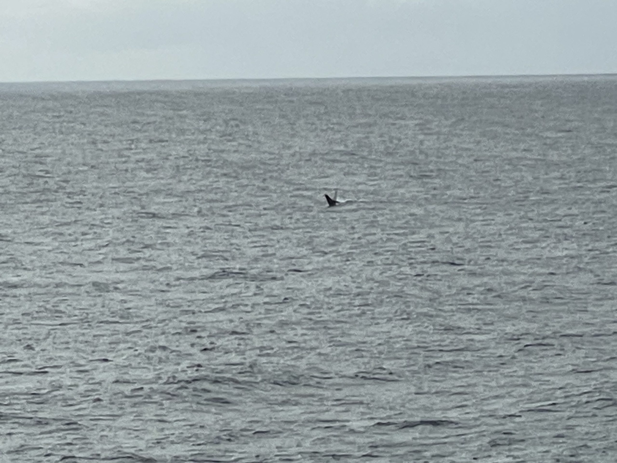 A whale jumping out of the water from a distance