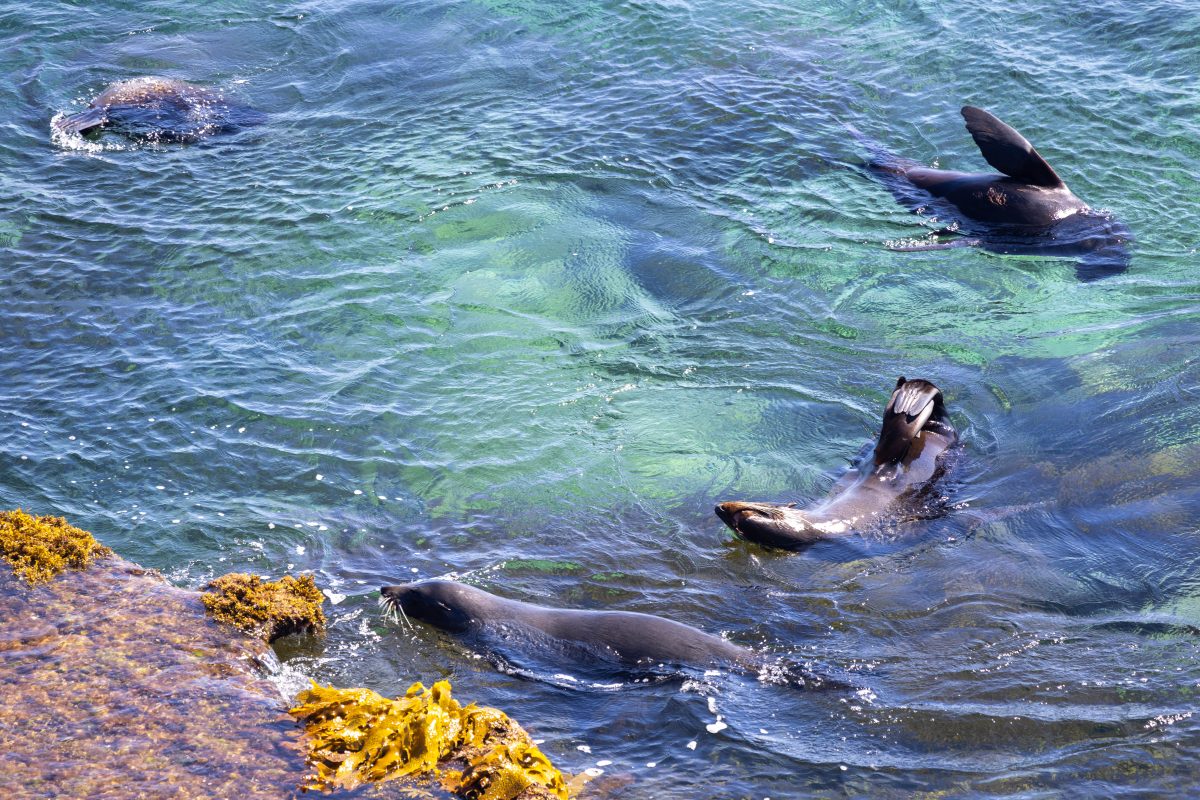 The fur seals playing in the water