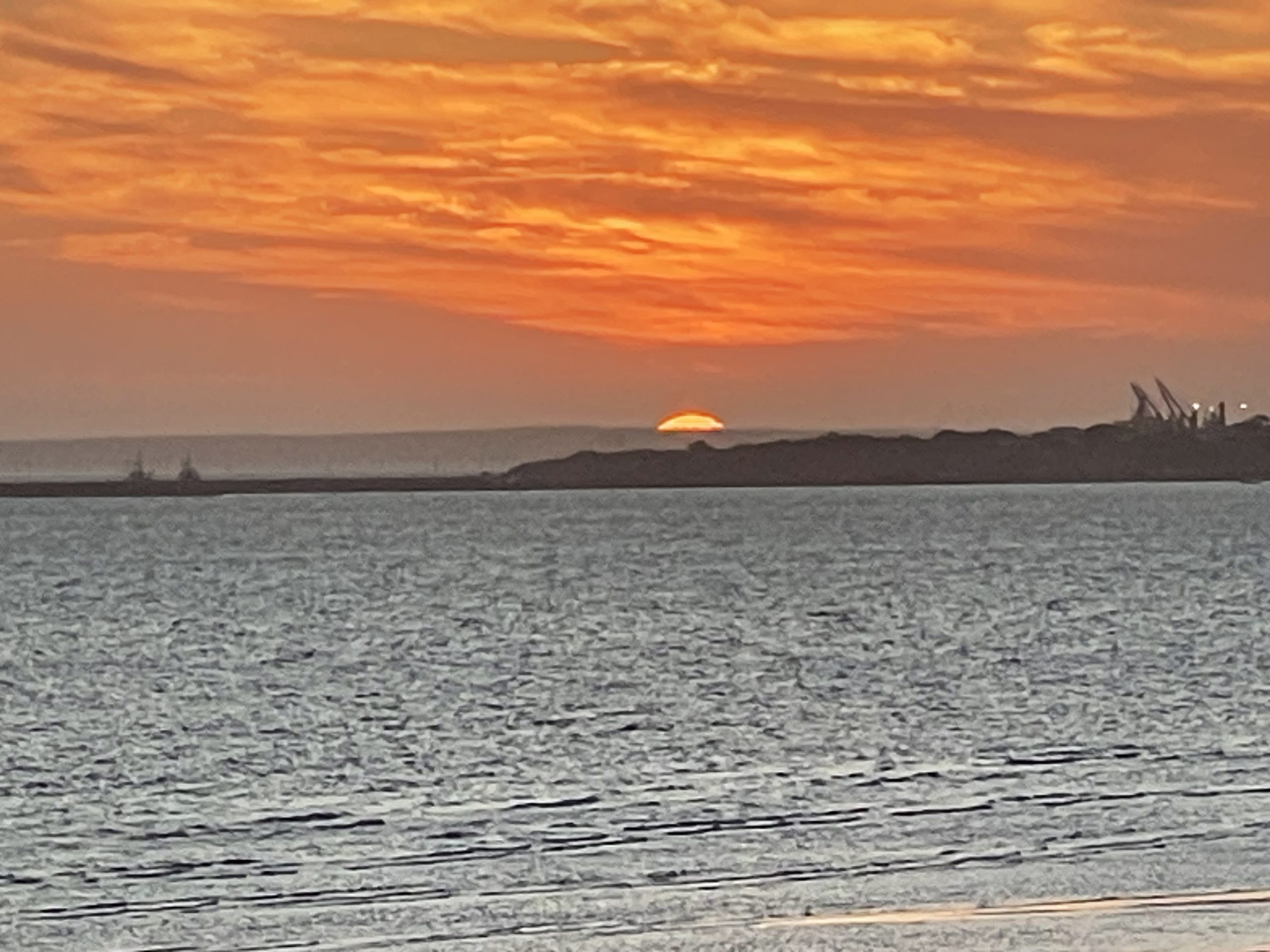 The sun halfway down the horizon